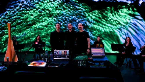 Collaborators for LIQUIDVERSE: Microcosm & Macrocosm include: Liquid Light Lab (visual director), Grammy-nominated Metropolis Ensemble (contemporary orchestra collective), Silas Brown (Grammy-Award winning sound engineer/spatial audio/Atmos), Ola Gjeilo (pianist) and Sandbox Percussion (featured musical guest artists) along with visual artists My Microscopic World (microorganism visuals) Cosmodernism & Yonkers Vidal (featured liquid visuals), and Journey Of Curiosity (cymatics visuals).